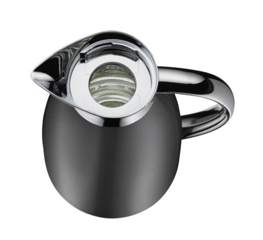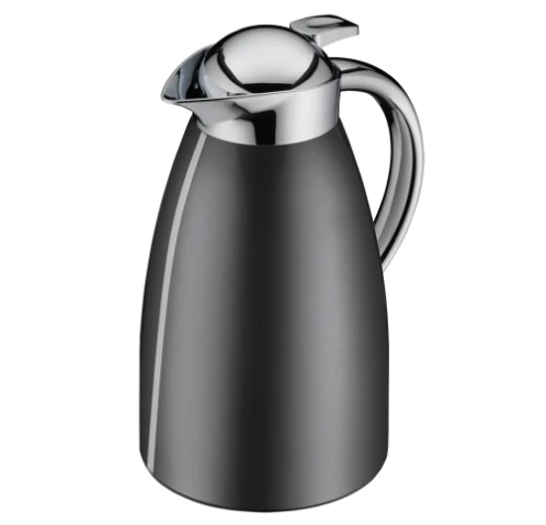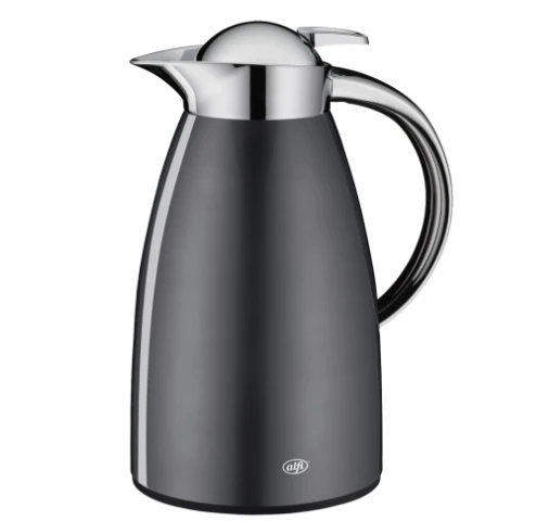 De dubbelwandige Signo thermoskan van Alfi is gemaakt van hoogwaardig metaal met een binnenkan van glas, is eenvoudig in gebruik en druppelt niet na. De thermoskan is voorzien van een ronde handgreep. Het mechanisme in de dop zorgt ervoor dat u met één hand kunt schenken zonder te morsen en draagt bij aan een goede isolatie.