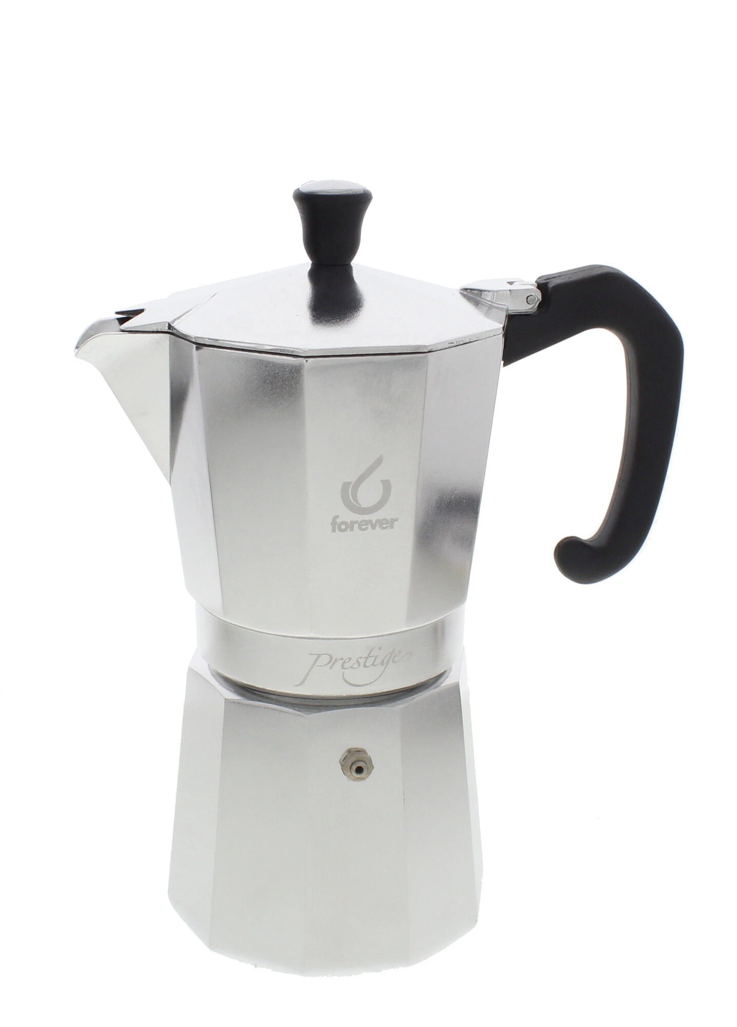 De Forever Miss Moka Prestige mokapot, ook wel percolator genoemd, is vervaardigd uit aluminium en geschikt voor het bereiden van 9 koppen espresso. Vul de mokapot met versgemalen bonen en zet deze op het fornuis om authentieke koffie te bereiden. De Forever Miss Moka Prestige mokapot is geschikt voor gebruik op een gas-, elektrisch, keramisch of halogeenfornuis.