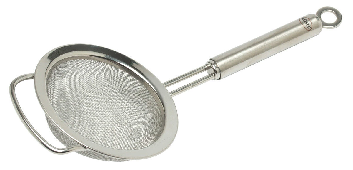 De theezeef van Rösle is van roestvrij staal en is voorzien van een ophangoog en tegengreep. De zeef heeft een totale lengte van 23 cm. Gebruik de Rösle zeef voor het zeven van bijvoorbeeld thee. De theebladen zullen in de fijne zeef achterblijven.