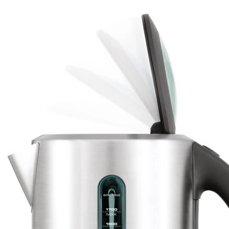 De The Soft Top Pure Kettle van Sage is een eenvoudige waterkoker. Door het hoge vermogen is het water snel aan de kook. Het deksel heeft een vertraagd openingssysteem, waardoor er geen heet water vanaf spetter.