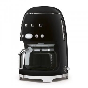 Het SMEG 50’s style koffiezetapparaat is vervaardigd uit zwarte kunststof en zet koffie op de snelfiltermethode. Het apparaat is 36,1 cm hoog, 25,6 cm breed en 24,5 cm diep en heeft een capaciteit van 10 koppen. De machine heeft een timerfunctie, waarmee u de starttijd kunt uitstellen en een functie voor een kleinere hoeveelheid koffie, voor een optimaal resultaat.